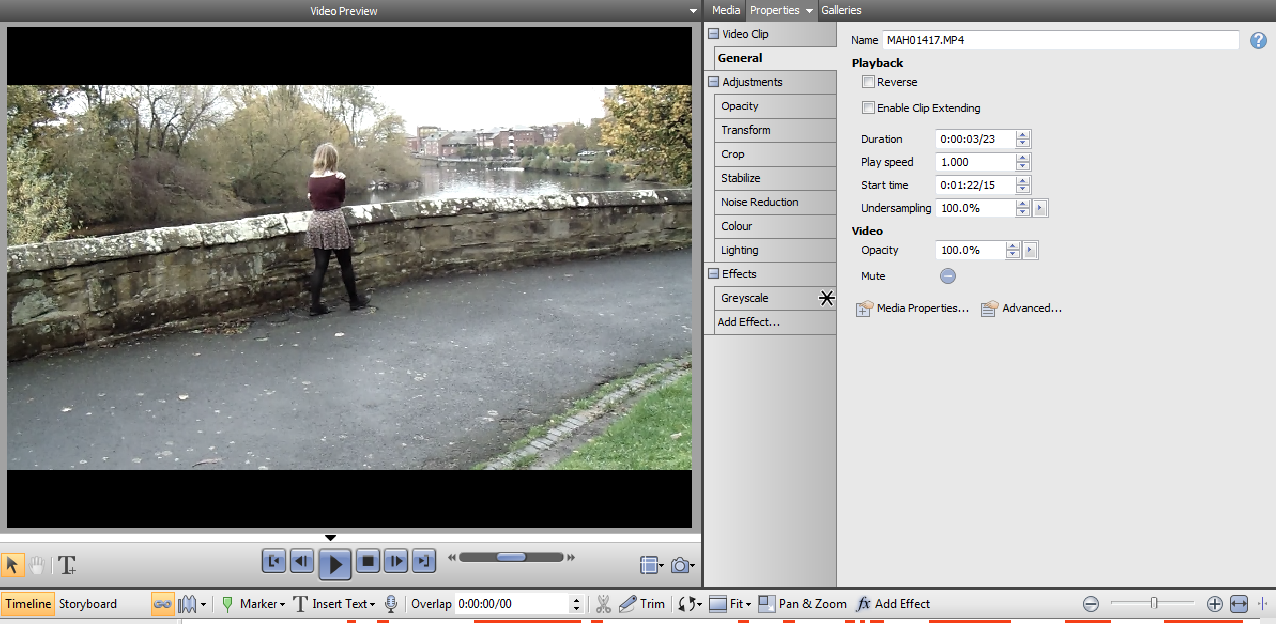 I have also edited the clip of my actress spinning around. I have turned the brightness up on this clip to make the clip lighter and my actress seem happier.
